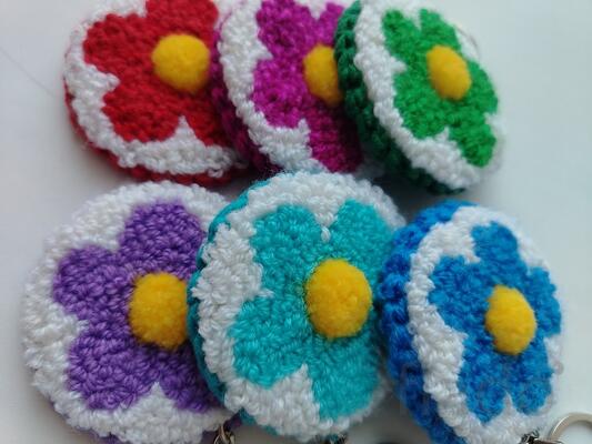 . выполнены в технике ковровая вышивка оборотная сторона обработана фетром диаметр около 7 см. высота - 13 см. .