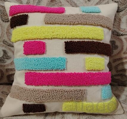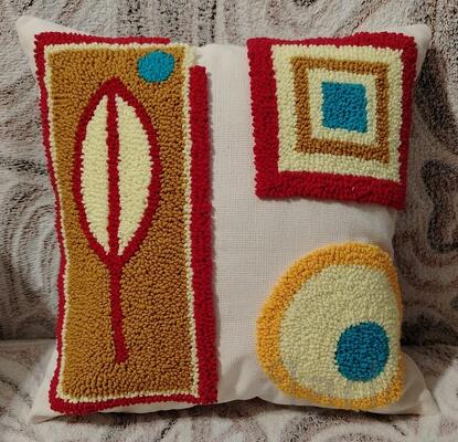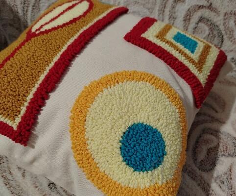 . выполнена техникой ковровая вышивка основа подушки 100% хлопок (двунитка) вышивка пряжей YarnArt акрил/хлопок внутренняя подушка из наполнителя холлофайбер, размеры 35*35см . больше фото по желанию .
